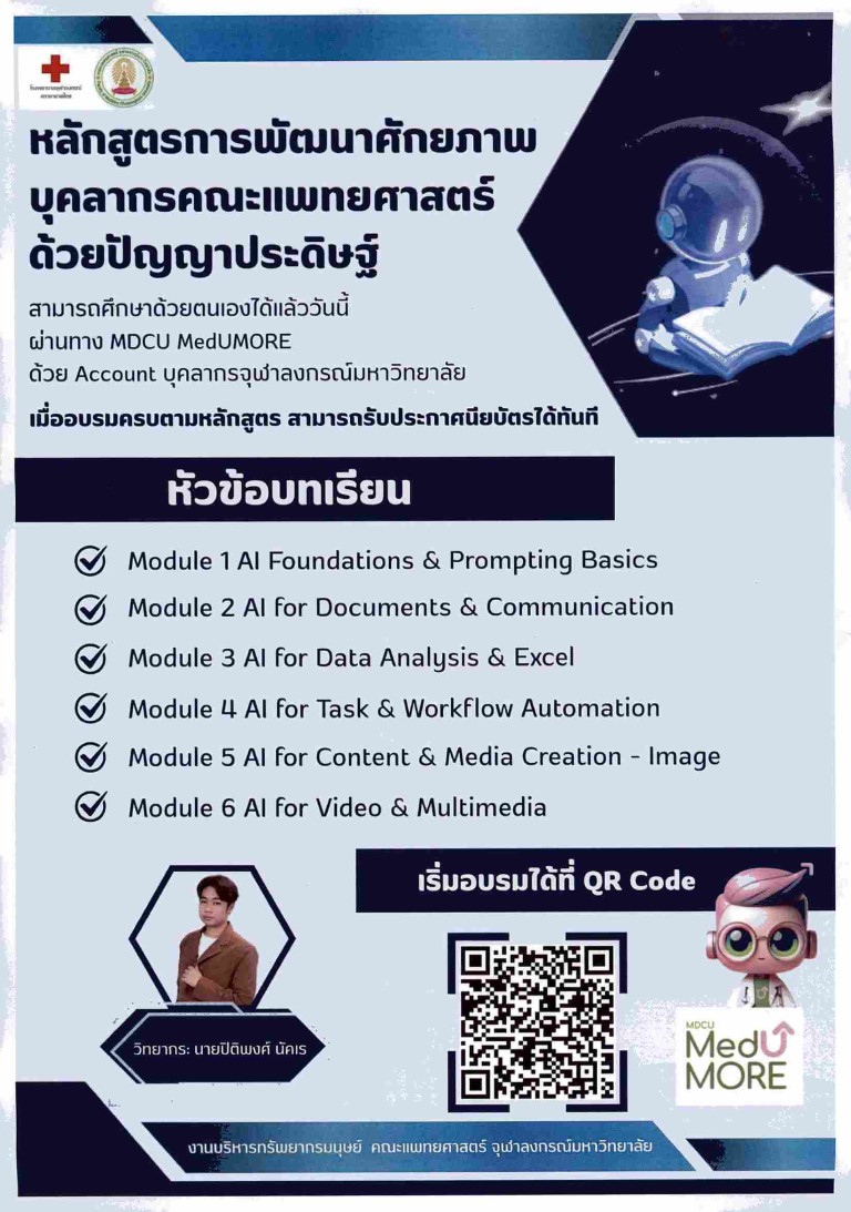 เชิญชวนบุคลากรเข้าอบรมหลักสูตรพัฒนาศักยภาพบุคลากรคณะแพทยศาสตร์ด้วยปัญญาประดิษฐ์
